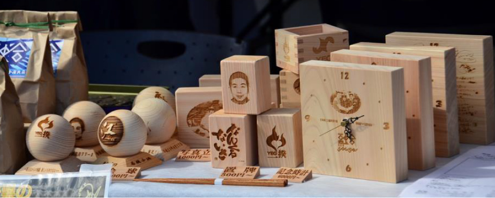 桧球や箸、看板や表札、時計や賞状、ストラップなど製品をご紹介いたします。